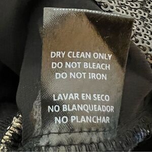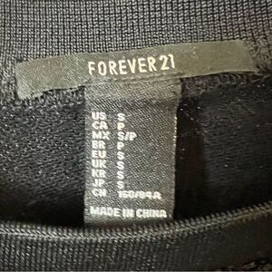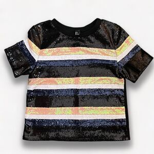 Forever 21 Striped Crewneck Short Sleeve Sequin Top, Size Small- Crewneck top with black, blue, white, and peach sequin stripes. The back is made from a solid black knit sweatshirt material.