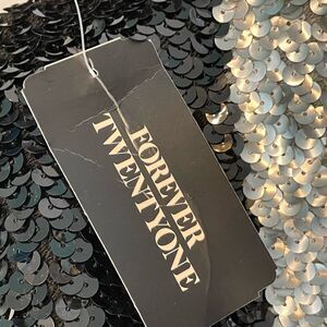 Forever 21 Sequin Bandeau Tube Top in Black and Silver Bold Sequin Stripes. It is a Strapless Top and has a Cropped Pull-Over fit. It is great for casual days at work, school, date night, night out with the girls, and Family Dinner. It would make a great Christmas Hanukkah Valentine’s Day Birthday or any Holiday gift!