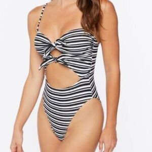 Forever 21 Striped Tie Front Detail One Piece Swimsuit