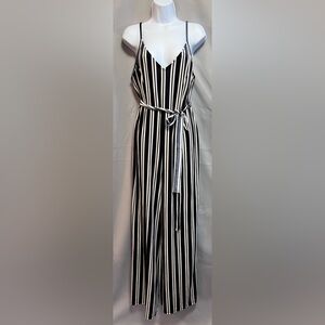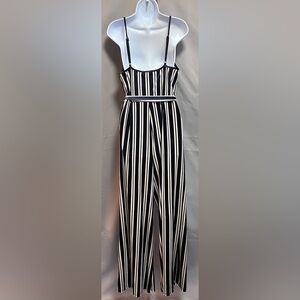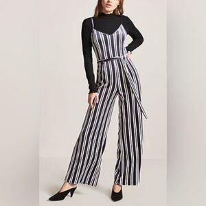 Forever 21 Striped Velvet Jumpsuit Navy/cream Sz 0X Plus Women’s