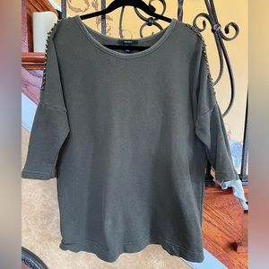 Forever 21 Studded 3/4 Sleeve Army Green Color Cotton Top Size M