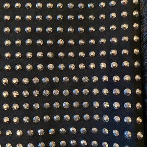 This mini skirt is brand new, but unfortunately too small for me! It features a fully studded silver front panel, and plain black back. It measures 15" long. Very cute for a night out!