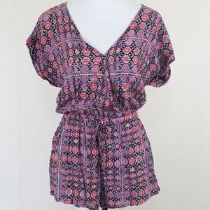 Forever 21 Surplice Front Printed Shorts Romper Jumper Size Small