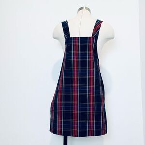 Forever 21 Suspender Plaid Mini Dress Black Shirt M Overall Pinafore