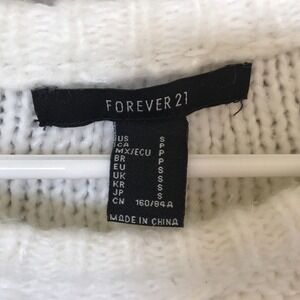 Forever 21 Sweater SzS Cropped Pom Poms White NWOT