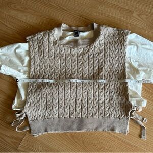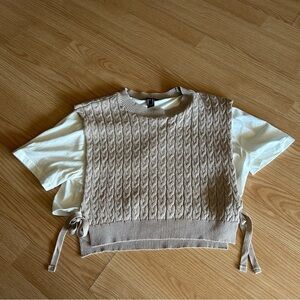 Forever 21 Sweater Vest Beige Combo Crop Top Medium