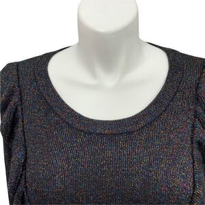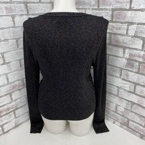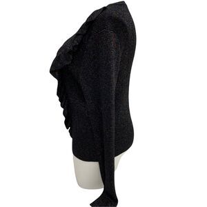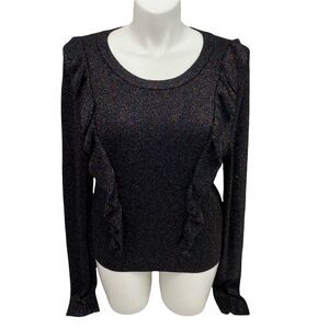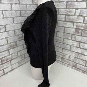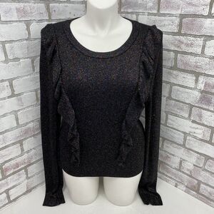 Forever 21 Sweater Women 3x Ruffle Ribbed Knit Metallic Holiday Work Party Black