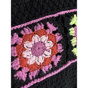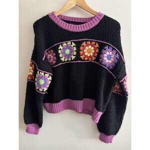 Forever 21 Sweater Women L Floral Cropped Boxy Knit Granny Square Hippie Boho
