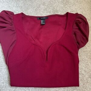Forever 21 Sexy Burgandy Bodysuit long sheer puff sleeves. Snaps closure for comfortable wear.