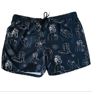 Forever 21 Swim Men’s Drawstring Trunks Size XL Black and White Graphic Design