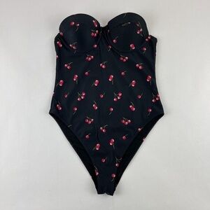 Forever 21 Swimsuit Womens Black Cherries One Piece Strapless