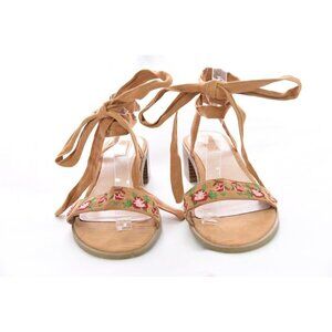 Forever 21 Sz 8.5 Floral Embroidered Faux Suede Leather Wrap Tie Lace Up Sandals