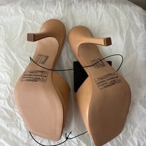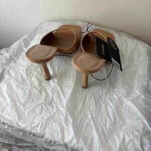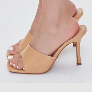 Forever 21 Tab Beige Faux Leather Stiletto Heel 10 Wide Size: 10 wide Color: Tan / beige Condition: New without box Details: • 4.25 inch heel • A pair of faux leather heels featuring a square open toe, stiletto high heel, and slip-on styling