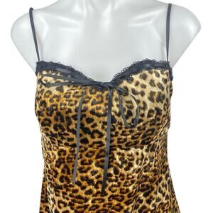 Forever 21 Tan Black Leopard Velvet Velour Sleeveless Lace Cami Slip Dress XL