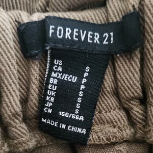 These Forever 21 chinos feature a high-rise waist and a straight-leg design, crafted in a classic tan shade. Made from durable cotton, they offer a relaxed fit ideal for both casual and work settings.
