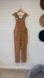 Casual tan overalls with front pocket. Durable fabric. Perfect for everyday wear.