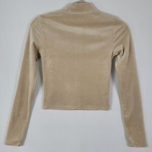 Forever 21 Tan Mockneck Full Zip Up Fleece Long Sleeve Crop Cardigan Size S NWT