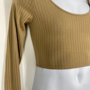 Forever 21 Tan Ribbed Long Sleeve Open-Back Crop Top – Size S