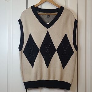 Forever 21 Taupe & Black Argyle Preppy Cotton Sweater Vest Size M