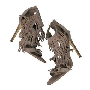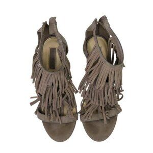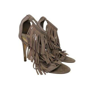 Forever 21 Taupe Suede Fringe Tiered Tassel Heels Size 7.5 Stiletto