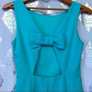 Forever 21 Vibrant Teal Bow Detailed Cut-Out Back Mini Sheath Dress