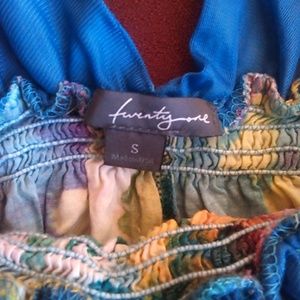 Condition - Like new with a minor flaw, see last picture. Tiny hole near the hem. Very hard to see because of the location and all the colors.