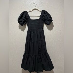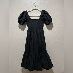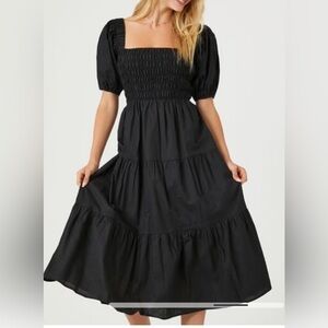 Forever 21 Tiered Puff-Sleeve Midi Dress Black Size Small Cottage Core Boho