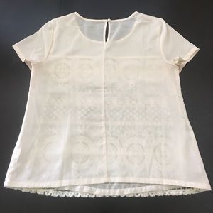 This is a cute, cream/ivory eyelet top that looks great with a pair of skinny jeans! Let me know if you would like additional pictures :)
