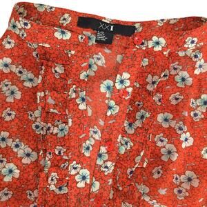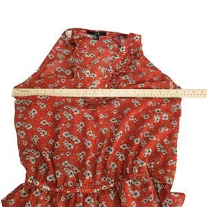 Forever 21 Top Sheer Ruffle Floral Orange Sleeveless Racerback Size Large