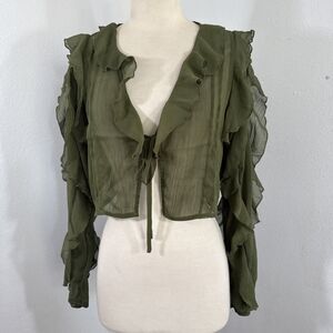 Forever 21 Top Women S Green Chiffon Ruffle Fairy Grunge Romantic 90s Y2K