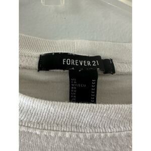 Forever 21 Top Women's Medium White Striped Long Sleeve Cropped Crewneck