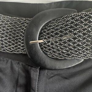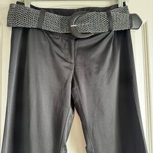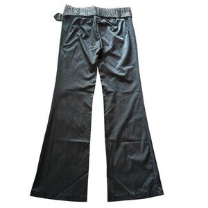 Forever 21 Trendy Black Satin Flare Low-Rise Pants with Wide Silver Belt – Size
