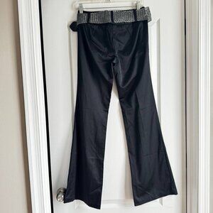 Forever 21 Trendy Black Satin Flare Low-Rise Pants with Wide Silver Belt – Size Small