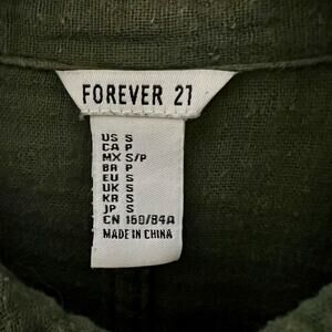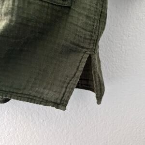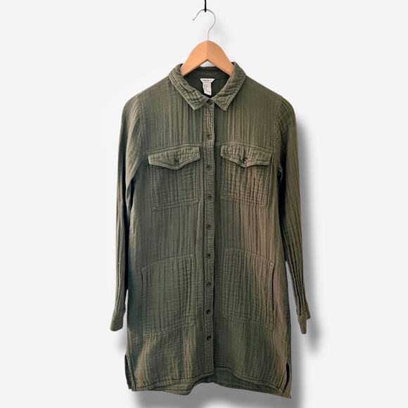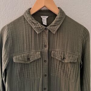 Forever 21 Tunic Shirt Small Green Muslin Utility Pockets Button Down