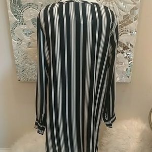 Contemporary Tunic or Dress is a must for anyone's wardrobe!! Black and white stripes, v neck. Add a belt for a different. look, great versatile piece.