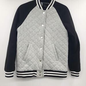 Forever 21 Varsity Jacket Small Womens Gray Quilted Sport Girlfriend