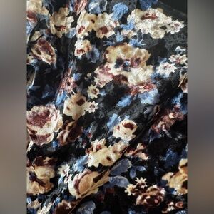 Forever 21 Velvet Floral Long Sleeve V-Neck Top Size L