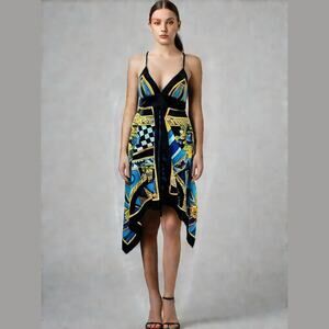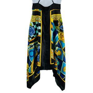 Forever 21 Vintage Black Multicolor Asymmetrical Halter Top Y2K Dress Women Sz S