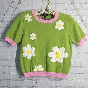 Forever 21 Vintage Inspired Springtime Daisy Floral Sweater Knit Top Womens Sz L