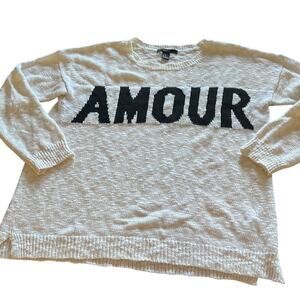 Forever 21 White “AMOUR” Slouchy Knit Sweater Size Medium Comfy