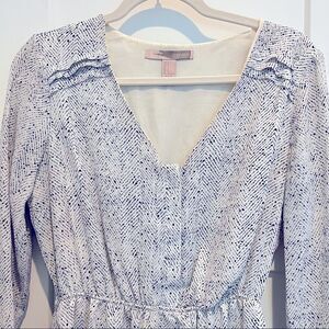 Forever 21 White & Black 3/4 Sleeve V-Neck Mini Dress Size: Women’s Size Small (S)