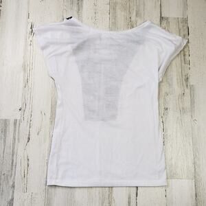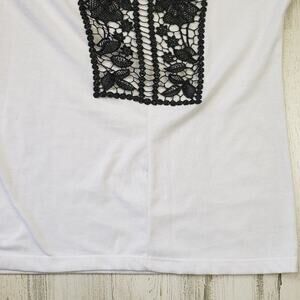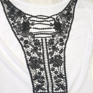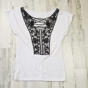 Forever 21 White Black Twist Lace Back Short Sleeve Top Women's Size Medium