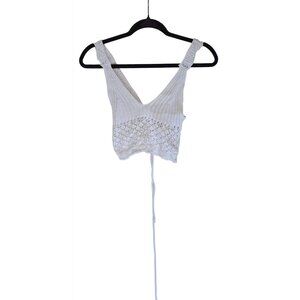 Forever 21 White Crochet Knit Lace-Up Crop Top X-Small