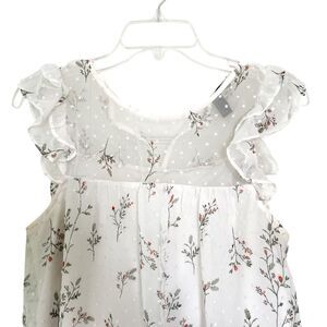 Forever 21 White Floral Swiss Dot Flutter Sleeve Babydoll Blouse Size Small