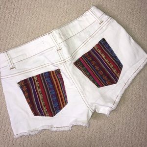 These are super cute barely used white denim shorts from Forever 21! They have really cute festive accenting and make for really cute beach vacation shorts!