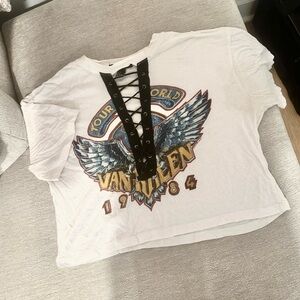 Forever 21 White Lace-Up Graphic Tee with Eagle Design