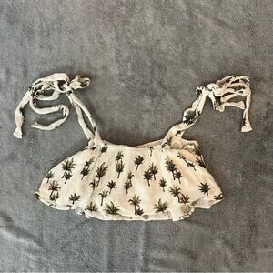 Forever 21 White Palm Tree Crop Top Tie Strap Summer Resort Beachwear Sz Small