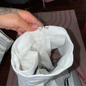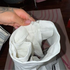 Elegant white skater skirt with bold black stripes. Perfect for versatile styling. Worn once