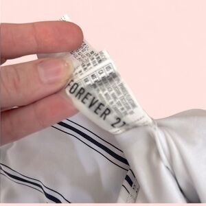 Stylish one-piece swimsuit. White with black stripes. Deep V-neck design. Perfect for beach or pool.