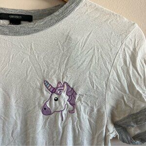 Elevate your casual wardrobe with this charming Forever 21 Unicorn Patch Tee, a delightful blend of comfort and whimsy! Crafted from soft, breathable fabric, this lightly used pre-loved white t-shirt features an eye-catching purple embroidered unicorn patch on the front, adding a playful touch to your everyday look. With its relaxed fit in size large, it’s perfect for layering or wearing solo, making it a versatile addition to your collection. Whether you're heading out for a coffee date or lounging at home, this tee is sure to spark joy and compliments alike. Don’t miss out on the chance to own this unique piece that combines style and fun effortlessly!